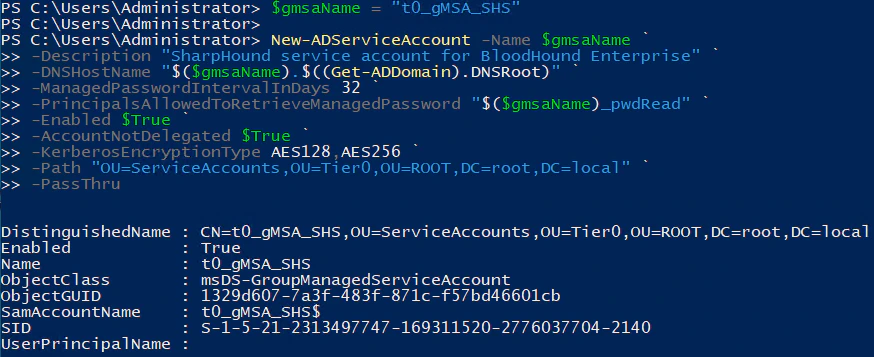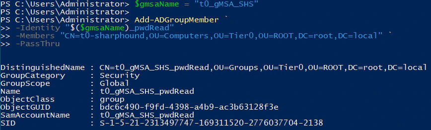In the elevated PowerShell, test that the SharpHound server can retrieve the gMSA password by running: