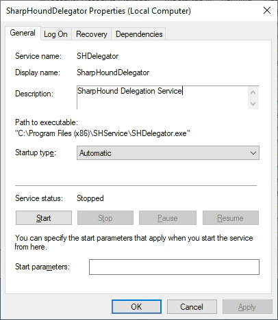 - Start the service. If service start fails see the section The SharpHound Delegator Service won’t start