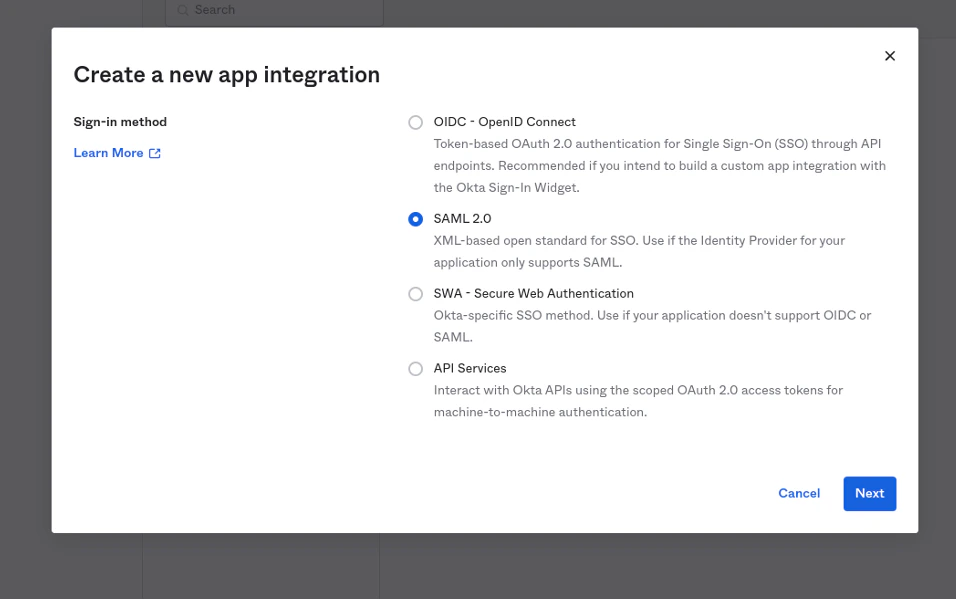 - Once finished, click next to begin setting the SAML configuration for this application.